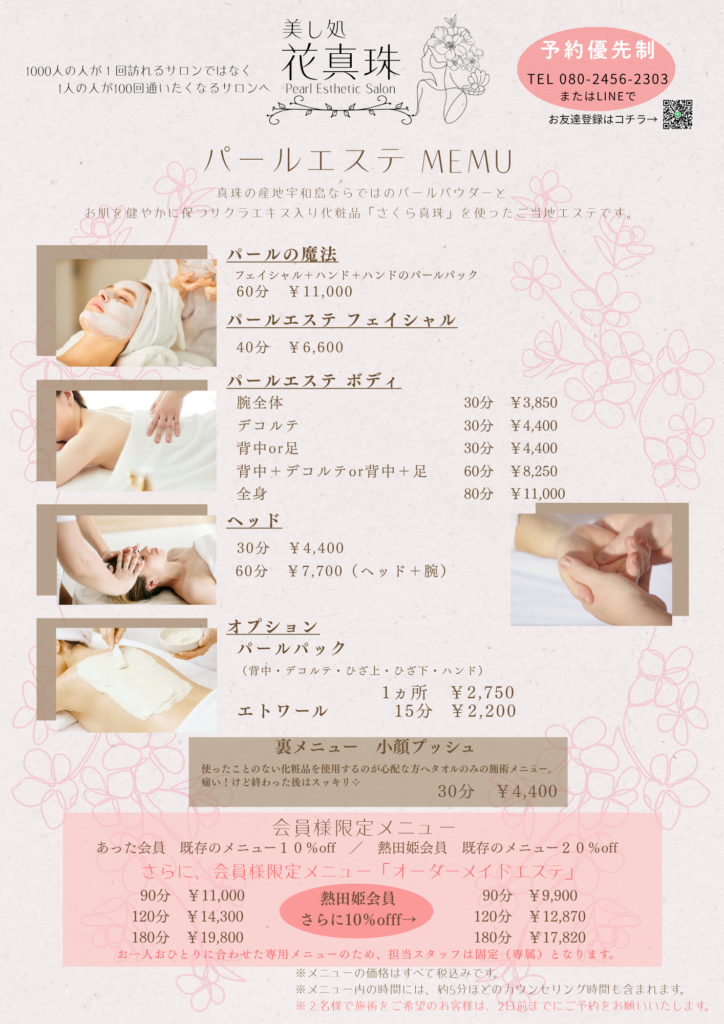 美し処花真珠メニュー